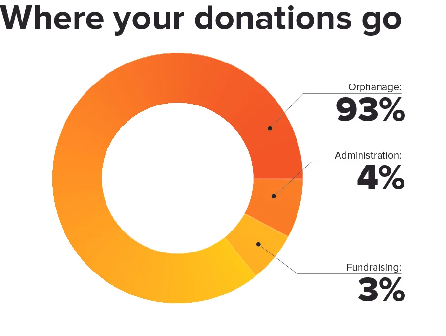 93 cents of every dollar you donate goes directly to the orphanage. The American Institute of Philanthropy gives An Orphan’s Dream an A+.